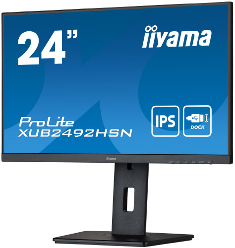 iiyama ProLite XUB2492HSN-B5. Diagonal de la pantalla: 61 cm (24″), Resolución de la pantalla: 1920 x 1080 Pixeles, Tipo HD: Full HD, Tecnología de visualización: LED, Superficie de la pantalla: Mate, Tiempo de respuesta: 4 ms, Relación de aspecto nativa: 16:9, Ángulo de visión, horizontal: 178°, Ángulo de visión, vertical: 178°. Altavoces incorporados. Conector USB incorporado, Versión de conector USB: 2.0 / 3.2 Gen 1 (3.1 Gen 1). montaje VESA, Ajustes de altura. Color del producto: Negro