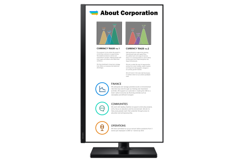 Samsung F24T450FQR. Diagonal de la pantalla: 61 cm (24″), Resolución de la pantalla: 1920 x 1080 Pixeles, Tiempo de respuesta: 5 ms, Relación de aspecto nativa: 16:9, Ángulo de visión, horizontal: 178°, Ángulo de visión, vertical: 178°. Conector USB incorporado, Versión de conector USB: 2.0. montaje VESA, Ajustes de altura. Color del producto: Negro