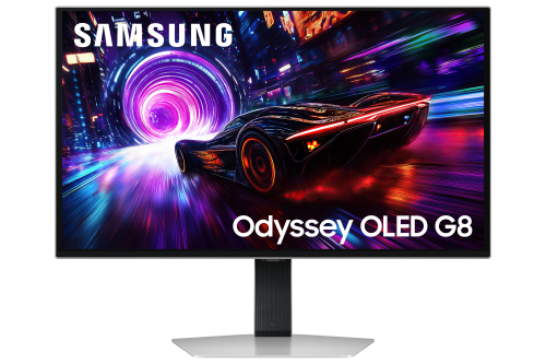 Samsung G81SF. Diagonal de la pantalla: 68,6 cm (27″), Resolución de la pantalla: 3840 x 2160 Pixeles, Tipo HD: 4K Ultra HD, Tecnología de visualización: OLED, Tiempo de respuesta: 0,03 ms, Relación de aspecto nativa: 16:9, Ángulo de visión, horizontal: 178°, Ángulo de visión, vertical: 178°. Conector USB incorporado, Versión de conector USB: 3.2 Gen 1 (3.1 Gen 1). montaje VESA, Ajustes de altura. Color del producto: Plata