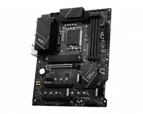 MSI PRO Z790-P WIFI. Fabricante de procesador: Intel, Socket de procesador: LGA 1700, Procesador compatible: Intel® Celeron®, Intel® Pentium® Gold. tipos de memoria compatibles: DDR5-SDRAM, Memoria interna máxima: 128 GB, Velocidades de reloj de memoria soportadas: 2133,2400,2666,2800,2933,3000,3200,3333,3466,3600,3733,3866,4400,4533,4600,4800,5000,5066,5200,5333. Interfaces de disco de almacenamiento soportados: M.2, PCI Express, Tipos de unidades de almacenamiento admitidas: HDD & SSD, Capacidad de almacenamiento interno: 10 GB. Tipo de interfaz ethernet: 2.5 Gigabit Ethernet, Estándar Wi-Fi: Wi-Fi 6 (802.11ax), Wi-Fi estándares: 802.11a, 802.11b, 802.11g, Wi-Fi 4 (802.11n), Wi-Fi 6 (802.11ax). Componente para: PC, Factor de forma: ATX, Familia del chipset: Intel