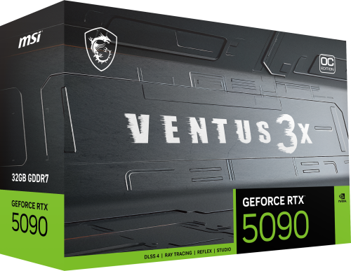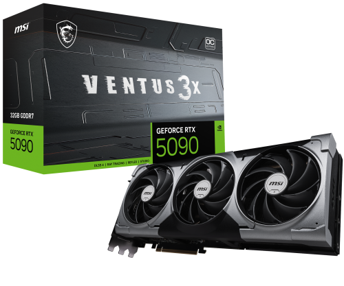 MSI VENTUS GEFORCE RTX 5090 32G 3X OC. Familia de procesadores de gráficos: NVIDIA, Procesador gráfico: GeForce RTX 5090. Capacidad memoria de adaptador gráfico: 32 GB, Tipo de memoria de adaptador gráfico: GDDR7, Ancho de datos: 512 bit. Máxima resolución: 7680 x 4320 Pixeles. Versión DirectX: 12 Ultimate, Versión OpenGL: 4.6. Tipo de interfaz: PCI Express x16 5.0. Tipo de enfriamiento: Activo, Número de ventiladores: 3 Ventilador(es)