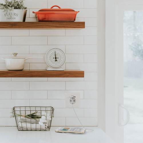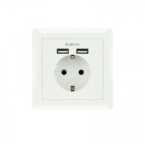 Producto apto para instalar en cajetín universal mediante tornillosnToma de corriente CEE 7/3n2 puertos de carga USB tipo A de carga máxima 2.4A totalesnConexión eléctrica con toma de tierranEntrada máxima: 16A/250VnSalida USB: Max. 5V/2.4A totalnSección máxima de cable admitida: 2.5mmnProtección contra cortocircuitosnCertificado CE, ROSH, LVD y KEMAnColor: BlanconnContenido del paquete:n- 1 x Enchufen- 2 x Tornillosn- 1 x Manual de usuario