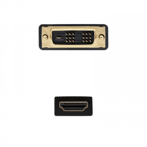 - Cable DVI a HDMI con conector tipo DVI 18+1 macho en un extremo y HDMI tipo A macho en el otro- Conector HDMI de alta calidad blindado en oro de 24K.- Múltiple apantallamiento formado por 128 hilos trenzados y lámina de aluminio para la máxima reducción de posibles interferencias. Fabricado con conductores de cobre (cobre OFC-Oxygen Free Copper- 99,99%) de alta calidad que garantiza la máxima calidad de transmisión.- Velocidades de transferencias de datos de hasta 5,1 Gb/s- Soporta resolución de hasta Full-HD 1080p