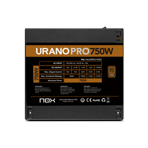 Urano PRO es la nueva serie de fuentes con certificado 80 PLUS Bronze de Nox. Estas fuentes de alimentación han sido diseñadas para garantizar una eficiencia del 85%, brindando una auténtica potencia continua al máximo rendimiento de las configuraciones para entusiastas y profesionales.