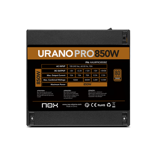 Urano PRO es la nueva serie de fuentes con certificado 80 PLUS Bronze de Nox. Estas fuentes de alimentación han sido diseñadas para garantizar una eficiencia del 85%, brindando una auténtica potencia continua al máximo rendimiento de las configuraciones para entusiastas y profesionales.