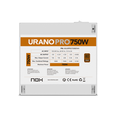 Urano PRO es la nueva serie de fuentes con certificado 80 PLUS Bronze de Nox. Estas fuentes de alimentación han sido diseñadas para garantizar una eficiencia del 85%, brindando una auténtica potencia continua al máximo rendimiento de las configuraciones para entusiastas y profesionales.