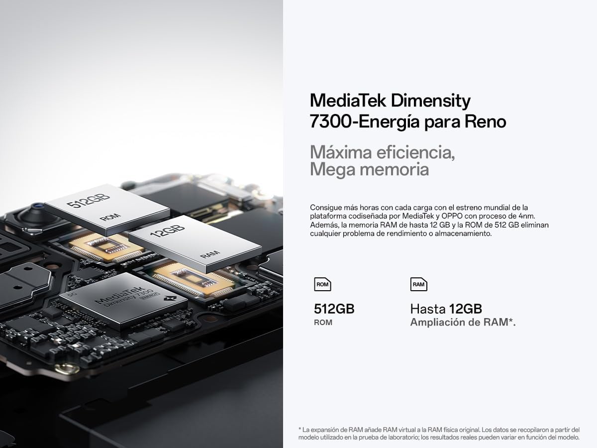 OPPO Reno12 Pro 5G - Smartphone Libre con IA, 24GB (12GB+12GB) +512GB, Pantalla 3D AMOLED 6.7", Cámara 50+8+50 MP, Android, Vídeo 4K, Batería 5000mAh, Carga Rápida 80W - Nebula Black .Carga rápida y larga duración.