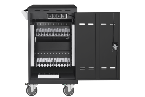 Carro de carga económico para 24 dispositivos¿Busca un carro de carga simple que guarde y cargue los dispositivos del aula sin que se dispare el presupuesto? Le presentamos el E24c, la última solución de carga económica de AVer, perfecta para una gestión cotidiana y sin esfuerzo de los dispositivos. Manejo sencilloEl diseño compacto del E24c y las ruedas giratorias de cuatro pulgadas facilitan el transporte de los dispositivos y proporcionan una óptima experiencia móvil incluso en los pasillos más concurridos o los espacios más pequeños.Gestión de cables y potencia sin igual¡Los dispositivos se conectan y cargan de forma eficaz sin sobrecargas ni la necesidad de configurar programas! Simplemente conecte el E24c a una toma de corriente y las cargas circularán de forma automática por cada fila de dispositivos.Máxima asequibilidadLa gestión de dispositivos de calidad no es necesariamente sinónimo de grandes gastos. El E24c satisface todas sus necesidades de carga a una fracción del coste.Un carro para todos los dispositivosEl E24c puede albergar fácilmente 24 ordenadores portátiles, Chromebooks o tabletas con pantallas de hasta 14 pulgadas. ¿Necesita cargar su portátil mientras carga las tabletas de los alumnos? Ahora es posible.Compacto y eleganteCuenta con un interior lo suficientemente espacioso como para almacenar 24 dispositivos y un exterior elegantemente diseñado para caber en los espacios más reducidos. ¡Ideal para espacios de pequeñas dimensiones!