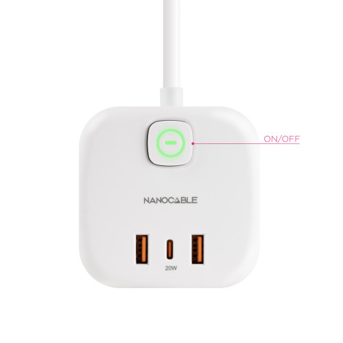 Nanocable Base de 3 enchufes con 3 USB (2 USB-A + 1 USB-C)