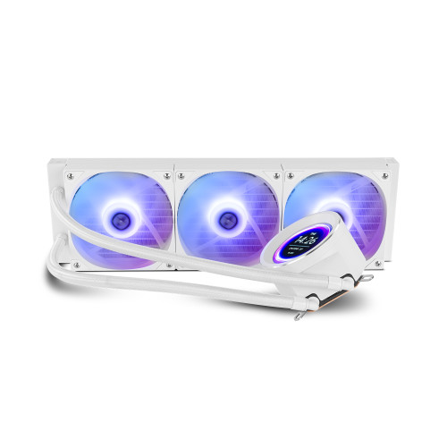 Hummer X-360 LCD es un kit de refrigeración líquida all in one fácil de instalar que ofrece un alto rendimiento con una baja sonoridad. Gracias a su radiador triple (397 x 120 x 27 mm) y sus ventiladores con función PWM que mantienen de manera eficaz la temperatura del ordenador. Además, incluye una pantalla LCD personalizable, que podrás configurar según los datos que necesites saber de tu configuración.