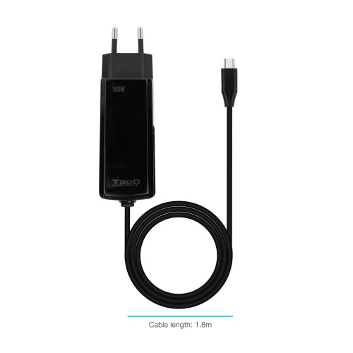 TooQ Cargador de portátil GAN USB-C PD 100W, Negro