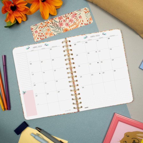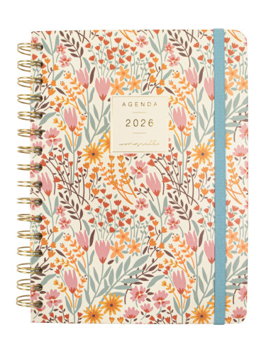 Agenda de tapa dura de cartón forrado con peliculado mate antirrayaduras. Con espiral doble, goma elástica y esquinas microperforadas para localizar rápidamente el día/semana en curso. Esta agenda se ha creado en colaboración con la diseñadora e ilustradora Moniquilla, obteniendo unas agendas bonitas y funcionales. Con una estética limpia y minimalista, contiene información de interés en la anualidad y otros contenidos extra. Además, dispone de dos marcapáginas y de adhesivos temáticos orientados a la organización personal. Formato similar a DIN A5 con las ventajas de una agenda portable y una de sobremesa. Duración: Enero 2026 – Diciembre 2026 (12 meses). Interior: Semana Vista Horizontal. Visión de la semana completa en horizontal que permite la escritura natural. Con planificación mensual cuadriculada al inicio de cada mes. Con información de los festivos de España. La anualidad de la agenda incluye: festivos nacionales, cambios de estación y días señalados. Contiene planificación mensual cuadriculada con las fases lunares intercalada en la anualidad. La agenda también dispone de otros contenidos extra: datos personales, calendarios, planificación anual en columnas, horarios, objetivos personales, planes, maleta, apartado para libros/películas/series/pódcast, hojas para anotaciones y tareas, contactos, adhesivos temáticos y dos marcapáginas. Idioma del artículo: español. Formato: E10 – 155×212 mm. Tapas de cartón forrado con peliculado mate antirrayaduras. Espiral doble metálica. Papel. 80 g/m². Papel FSC®.