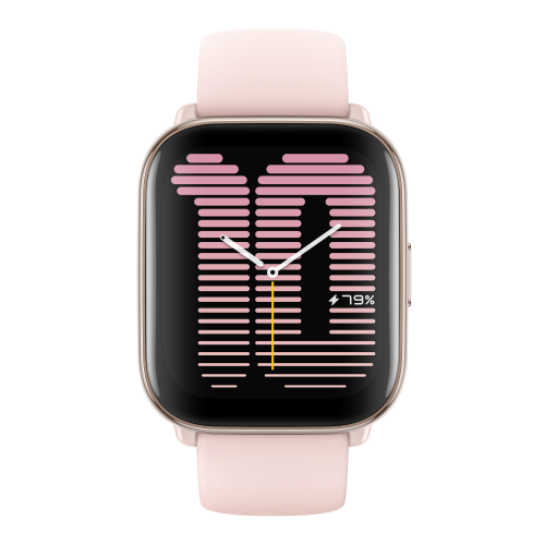 Amazfit Active. Diagonal de la pantalla: 4,45 cm (1.75″), Tecnología de visualización: AMOLED, Resolución de la pantalla: 390 x 450 Pixeles, Pantalla táctil. Capacidad de RAM: 32 MB. GPS (satélite). Capacidad de batería: 300 mAh. Peso: 24,13 g. Material de la banda: Silicona, Color de banda: Rosa
