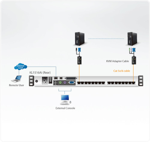 Hardwaren- Consola KVM incorporada con pantalla LCD de 17 ó 19 pulgadas y 2 módulos retráctilesn- Una única consola puede controlar hasta 16 computadorasn- Conexión en margarita con hasta 15 conmutadores KVM adicionales para poder controlar hasta 256 computadoras*n- Un bus para el acceso remoto KVM sobre IPn- Conectores RJ-45 y cableado de Cat. 5e/6 para ahorrar espacion- Cables adaptadores KVM diseñados para la conversión automática para permitir cualquier tipo de combinación de interfaz (PS/2, USB, Sun y serie) a la hora de controlar las computadoras conectadasn- Puerto de consola adicional – controle las computadoras conectadas al conmutador KVM desde una consola externa (monitor, teclado USB o PS/2 y mouse USB o PS/2)n- Compatibilidad multiplataforma: PC, Mac, Sun y serien- Admite un mouse USB externon- Carcasa con dos módulos retráctiles que ocupa algo menos que un alojamiento 1U con espacio arriba y abajo para un funcionamiento suave en el rackn- Dos módulos retráctiles – el monitor LCD se puede retraer independientemente del módulo de teclado/panel táctiln- El módulo LCD se puede girar libremente 120 grados para obtener un mejor ángulo de visualizaciónn- Bloqueo de consola – garantiza que la consola quede firmemente guardada cuando no se empleen- El botón de encendido/apagado para la pantalla LCD ayuda a ahorrar energía y alarga la vida útil de la pantallannAdministraciónn- Hasta 64 cuentas de usuario – hasta 32 sesiones simultáneas de usuarios remotosn- Función de terminación de sesión – los administradores pueden terminar cualesquiera de las sesiones iniciadasn- ID de adaptador – almacena la información del puerto de manera que los administradores puedan reubicar los servidores en puertos diferentes sin tener que reconfigurar los adaptadores ni el conmutadorn- Modo de puerto compartido para que varios usuarios puedan acceder a un mismo servidor simultáneamenten- Control de la alimentación eléctrica de los equipos Power Over the NET™ conectadosn- Integración con el software de administración ALTUSEN CC2000n- Admite el registro de eventos y un servidor de registro basado en Windowsn- Registro de eventos localesn- Firmware actualizablen- Admite direcciones IPv6nnInterfaz de usuario fácil de usarn- Fácil selección de computadoras a través de pulsadores, teclas de acceso directo, menú (OSD) en pantalla e interfaz gráfica en navegador Webn- Consola local, basada en navegador Web e interfaz gráfica de usuario unificada multilingüe para minimizar el tiempo de entrenamiento de usuarios y mejorar la productividadn- Compatibilidad de clientes multiplataforma (Windows, Mac OS X, Linux, Sun)n- Admite múltiples navegadores: Internet Explorer, Chrome, Firefox, Safari, Opera, Mozilla, Netscapen- Interfaz del usuario basada en navegador Web que permite a los administradores gestionar los equipos sin tener que instalar el paquete de Javan- Modo de miniaturas en mosaico (Panel Array Mode™)n- Difusión de comandos del teclado* – las entradas efectuadas por el teclado se pueden difundir simultáneamente a todos los servidores conectadosnnSeguridad avanzadan- Admite la autenticación remota: RADIUS, LDAP, LDAPS y MS Active Directoryn- Cifrado SSL de 128 bits para proteger la contraseña cuando los usuarios inicien sus sesionesn- El diseño flexible de cifrado permite que los usuarios escojan una combinación de DES de 56 bits, 3DES de 168 bits, AES de 256 bits, RC4 de 128 bits o aleatoria de forma independiente para codificar las señales de teclado/mouse y de la señal gráfican- Admite filtros IP/MAC para más seguridadn- Permisos de acceso y control de servidores configurables para usuarios y gruposnnEscritorio remoto virtualn- La calidad gráfica y la tolerancia de la señal gráfica se pueden ajustar para optimizar la velocidad de transferencia de datos ajuste del color para blanco y negro, ajustes para umbral y ruido para comprimir el ancho de banda de los datos en entornos con poco ancho de banda disponiblen- Escritorio remoto virtual a pantalla completa o escalablen- La función de panel de anuncios permite que los usuarios conectados se comuniquen entre ellos.n- Mouse DynaSync™ – sincroniza los movimientos locales y remotos del mouse de forma automátican- Teclado multilingüe en pantallan- Acceso a nivel del BIOSnnContenido del Embalajen- 1 conmutador KVM con pantalla LCD y dos módulos retráctiles KL1516Ain- 1 cable de alimentaciónn- 1 kit para montaje en rack estándarn- 1 cable para actualizar el firmwaren- 1 manual del usuario