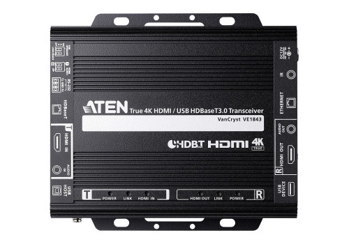 El VE1843, el primer transceptor de vídeo de ATEN, cuenta con la última tecnología HDBaseT 3.0. Esto permite a los usuarios configurar fácilmente el dispositivo para que funcione como transmisor o receptor en función de la solución audiovisual que necesiten. Por otro lado, puede transmitir señales HDMI True 4K sin compresión a una distancia de hasta 100 m (328 pies), sin latencia y mediante un único cable Cat. 6a. Gracias a su diseño de hardware orientado al usuario y a su mayor durabilidad, este nuevo modelo ha sido diseñado para espacios que requieren una transmisión de señales de alta calidad a larga distancia en instalaciones sencillas y un funcionamiento ininterrumpido como, por ejemplo, salas de conferencias, auditorios, salones de banquetes y museos.Un dispositivo, dos configuracionesEl transceptor VE1843 integra las funciones de un transmisor y un receptor en un mismo dispositivo, lo que permite a los usuarios configurar fácilmente la dirección (Tx / Rx) correspondiente y disfrutar de un despliegue más flexible con matrices de conmutación de vídeo o distribuidores, entre otros.HDMI True 4K sin compresión con HDR a 100 mEl transceptor VE1843 ofrece una calidad de vídeo superior incluso cuando los dispositivos de salida están situados a gran distancia, ya que transmite señales HDMI True 4K sin compresión a 60 Hz (4:4:4) con HDR hasta una distancia de 100 m (328 pies) a través de un cable Cat. 6a sin latencia.Un cable para transmitirlo todoPermite optimizar instalaciones complejas y disfrutar de un control multiseñal a través de un cable Cat. 6a para extender las señales, entre las que se incluyen vídeo de alta calidad, audio, infrarrojos, RS-232, Gigabit Ethernet y USB 2.0 para la gestión de equipos ubicados a distancia.Incrustación y desincrustación de audio HDMIEl VE1843 incluye funciones de incrustación y desincrustación de audio HDMI, lo que permite a los usuarios incrustar fácilmente una fuente de audio independiente al contenido de vídeo para aplicaciones formativas y educativas, o desincrustar una señal de audio de la fuente de entrada HDMI y emitirla a un amplificador o altavoz para mejorar la calidad del sonido.Carcasa a medida con disipador de calor sin ventiladorGracias a su diseño, el VE1843 evita el sobrecalentamiento y el mal funcionamiento de los ventiladores, lo que puede hacer que el dispositivo deje de funcionar. Además, garantiza una disipación térmica eficaz y una transmisión de la señal ininterrumpida, al mismo tiempo que aumenta su vida útil.Diseño con detalles pensados para el usuarioEl diseño del VE1843 aumenta su facilidad de uso, ya que incluye un etiquetado autoexplicativo para el reconocimiento intuitivo de los puertos, soportes integrados para facilitar el montaje, indicadores luminosos para un diagnóstico rápido y un espacio dedicado en la parte frontal para escribir etiquetas que faciliten el reconocimiento y la gestión de los dispositivos.AplicacionesEl VE1843 es ideal para realizar presentaciones de vídeo breves o de duración normal en salas de conferencias o espacios públicos, así como para otras aplicaciones en las que se necesita una transmisión de señal de alta calidad a una distancia de hasta 100 m (328 pies).