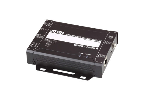 Aten VE1812T. Tipo: Transmisor de señales AV, Máxima resolución: 4096 x 2160 Pixeles, Tipos de cable soportados: Cat5e,Cat6,Cat6a. Tecnología de conectividad: Alámbrico. Voltaje de funcionamiento (transmisor): 5 V, Consumo de energía (transmisor) (max): 4,3 W. Dimensiones del transmisor (An x P): 123 x 140,4 x 30 mm, Transmisor de peso: 470 g