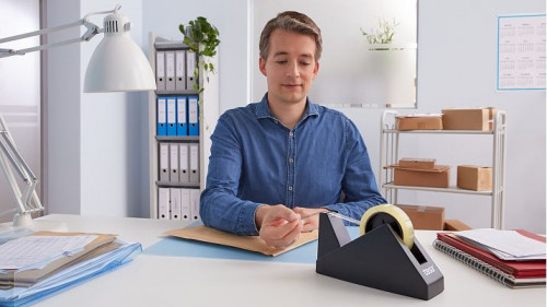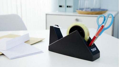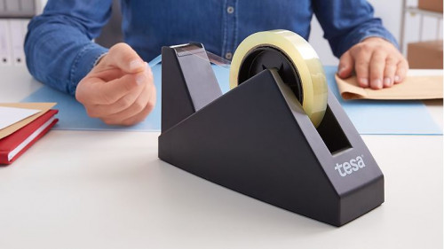 El dispensador Economy de Easy Cut Desk Dispenser de tesa® es un dispensador de gama económica para cintas adhesivas, con una base antideslizante y una cuchilla dentada integrada.El dispensador de escritorio Easy Cut de tesa® es el dispensador de cinta adhesiva clásico para el hogar y la oficina. Puede contener cualquier rollo de cinta autoadhesiva provista en un núcleo de 3 pulgadas y coincide con cualquier grado de tesafilm® con una anchura de 25 mm y una longitud de 66 m. Un mecanismo complementario práctico hace que el cambio de la cinta sea algo rápido y fácil de realizar. Una hoja de sierra se encarga de realizar cortes precisos y rectos para lograr aplicar de manera ordenada la cinta en documentos, regalos, flores o paquetes.
