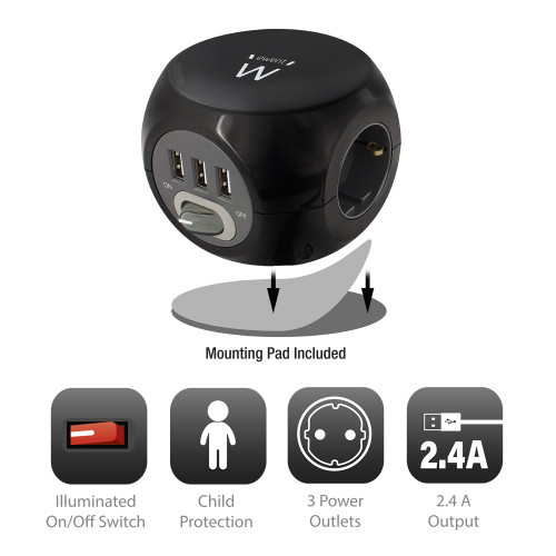 Ewent EW3938. Utilizar con: Universal, Tipo de fuente de alimentación: Interior, Voltaje de entrada: 250 V. Conector USB: USB tipo A, Corriente de salida USB: 2,4 A, Voltaje de salida USB: 5 V. Color del producto: Negro. Longitud de cable: 1,5 m, Ancho: 92 mm, Profundidad: 80 mm. Cantidad por paquete: 1 pieza(s), Ancho del paquete: 122 mm, Profundidad del paquete: 110 mm
