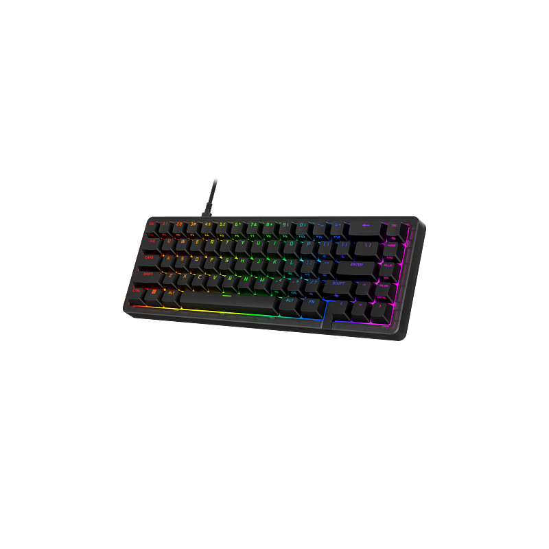 Conéctate y juega con Origins 2 65, un teclado gaming compacto diseñado para ser personalizado. Con una carcasa fácil de cambiar e interruptores intercambiables en caliente, Origins 2 se puede personalizar para crear tu propia plataforma única de escritura y juego. ¡Cambia las teclas, los interruptores y la carcasa en cualquier momento![1] Origins 2 65 mantiene todas las teclas esenciales, eliminando entradas innecesarias para mantener un tamaño reducido y ofrecer una gran eficiencia. El diseño al 65 % ocupa menos espacio en tu escritorio, pero te mantiene en el juego. En su interior, encontrarás una junta tórica de silicona y una placa de policarbonato que absorben las vibraciones y reducen el eco para que puedas escribir con tranquilidad. No obstante, este teclado no se ha fabricado únicamente para escribir. Con una frecuencia de sondeo de hasta 8k, Origins 2 transmite la entrada a tu ordenador hasta 8000 veces por segundo, asegurándose de que se capture cada pulsación de tecla. La carcasa de perfil alto está equipada con patas abatibles para que puedas ajustar los ángulos y disfrutar de una mayor comodidad y ergonomía perfecta. Este teclado viene equipado con interruptores lineales rojos HyperX que proporcionan una respuesta rápida y suave, así como una activación ágil de 1,8 mm. Los interruptores HyperX utilizan soportes POM de media pared para añadir estabilidad y fiabilidad con un máximo de 80 millones de pulsaciones, y puedes sustituir esos interruptores cuando te apetezca. Los conectores intercambiables en caliente son compatibles con la mayoría de los teclados mecánicos de 5 o 3 clavijas. Origins 2 se puede personalizar en su totalidad con el software HyperX NGENUITY. Puedes reasignar fácilmente funciones clave, asignar macros, personalizar efectos RGB y crear hasta 3 perfiles para obtener la máxima funcionalidad en cualquier situación.