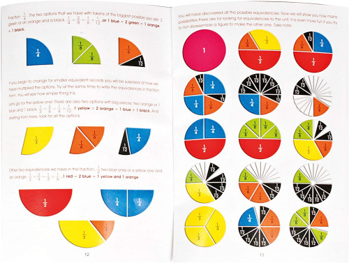 Aprendizaje ameno y divertido del mundo de las fracciones a través de situaciones cotidianas para los niños que se describen en una guía didáctica que se apoya en las piezas que ilustran de forma práctica cada concepto, así se consigue que asimilen perfectamente y entiendan el mundo de las fracciones. A partir de 7 años.