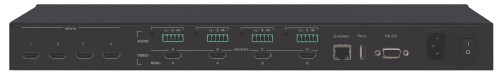 Kramer Electronics VSM-4X4A. Tipo de producto: Matriz de conmutación AV, Máxima resolución: 1920 x 1200 Pixeles, Resoluciones soportadas: 1024×768, 1280×800, 1280×1024, 1366×768, 1440×900, 1600×900, 1680×1050, 1920×1200. Color de la carcasa: Negro, Capacidad del rack: 1U. Conector USB: USB tipo A. Voltaje de entrada AC: 100-240 V. Ancho: 436 mm, Profundidad: 237,2 mm, Altura: 43,6 mm