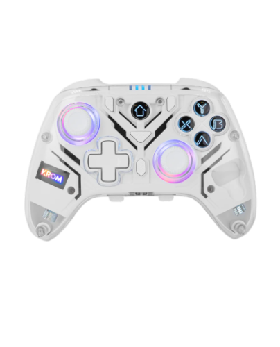 Krom NXKROMKRYSTAL. Tipo de dispositivo: Palanca de mando, Plataformas de juego soportadas: Android, Nintendo Switch, Nintendo Switch 2, PC, iOS, Botones de función control para gaming: Cruceta, Botón de inicio, Botón turbo. Tecnología de conectividad: Inalámbrico y alámbrico, Interfaz del dispositivo: Bluetooth/USB, Conector USB: USB Tipo C. Color del producto: Transparente, Blanco, Indicadores LED: Nivel de batería. Fuente de energía: Cable/Batería, Tipo de batería: Integrado, Capacidad de batería: 600 mAh. Ancho: 162 mm, Profundidad: 106,5 mm, Altura: 56 mm