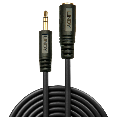 Lindy 35656. Conector 1: 3,5mm, Género del conector 1: Macho, Conector 2: 3,5mm, Género del conector 2: Hembra, AWG calibre del cable: 28, Longitud de cable: 10 m, Color del producto: Negro