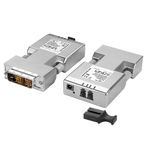 Lindy 38113. Tipo de puerto de vídeo: DVI, Conector: DVI-D. Máxima resolución: 1920 x 1200 Pixeles, Color del producto: Plata, Distancia de funcionamiento máximo: 1500 m. Dimensiones (Ancho x Profundidad x Altura): 40 x 70 x 15 mm