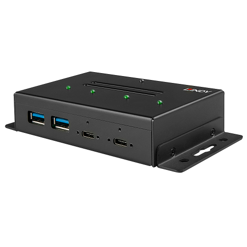 Lindy 43094. Interfaz de host: USB 3.2 Gen 2 (3.1 Gen 2) Type-C, Interfaces de concentradores: USB 3.2 Gen 2 (3.1 Gen 2) Type-A, USB 3.2 Gen 2 (3.1 Gen 2) Type-C. Velocidad de transferencia de datos: 10000 Mbit/s, Color del producto: Negro, Material de la carcasa: Metal. Voltaje de entrada: 5 V, Corriente de entrada: 4 A. Ancho: 135 mm, Profundidad: 60 mm, Altura: 24 mm. Ancho del paquete: 230 mm, Profundidad del paquete: 198 mm, Altura del paquete: 63 mm