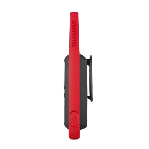 Walkie Talkie Motorola T62 Rojo. Alcance: hasta 8 km. Autonomía de hasta 18 horas. Pantalla LCD con indicador de batería e iluminación trasera. Canales: 16 + 121 códigos de seguridad. Banda de frecuencia: PMR446 – sin licencia. Ancho de banda: 12,5 Khz. Baterías (NiMH 800 mAH) y cargador incluidos + 2 clips para colgar en el cinturón. Tiene conector para cascos de 2,5mm y conector de carga Micro USB. Incluye adhesivos de personalización.