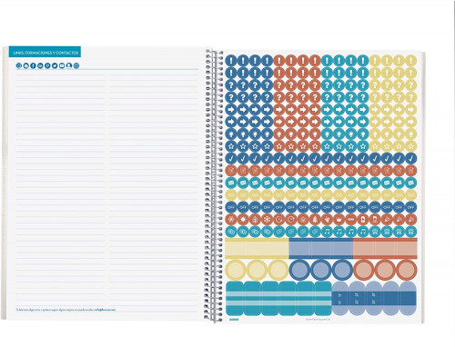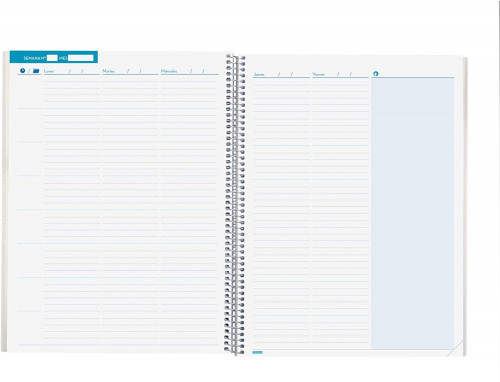 Planificador de clases semanal para organizar hasta 8 horas/materias y con espacio para anotaciones. Concebido para adaptarse a cualquier especialidad del mundo educativo: profesores, maestros, coaches, tutores, educadores, etc. Dispone de apartados específicos para los docentes. Diseño actual y moderno tanto de la cubierta como de su interior. Con espiral simple metálica resistente, goma elástica y tapas de polipropileno que permiten la personalización de la portada. Podrás descargar las portadas que encontrarás en la web Finocam, en el apartado DESCARGAS, o diseñar la tuya propia e insertarla en las tapas. El formato es algo mayor que un DIN A4 para así poder pegar documentos importantes del centro en las páginas libres. Incluye 269 pegatinas y dos fundas transparentes con capacidad para DIN A4. Con esquinas microperforadas para localizar rápidamente el día/semana en curso. Detalles de los apartados: Datos personales, hojas de contenido libre, horarios, planos de la clase, fechas de reuniones, fechas de entrevistas, fechas de actividades y salidas, checklist, ideas y proyectos de innovación, aniversarios, planificación mensual sin fecha, anualidad Semana Vista Vertical sin fecha (para un curso lectivo) con espacio para detallar hasta 8 horas/materias, 24 hojas de listas/evaluaciones (hasta 40 alumnos), 7 hojas de reuniones, links, formaciones y contactos. En la web Finocam, en el apartado DESCARGAS, encontrarás otros descargables imprimibles: plantillas para listas, diseños de portada opcionales, calendario del curso, planning mensual del curso, plantillas de checklist, hoja de recordatorios y otros. Finocam Docente: La organización completa para l@s docentes de hoy.Los artículos Finocam están diseñados para optimizar tu organización personal, haciendo tu vida más práctica, cómoda y a la vez más bella. Comprando Finocam adquieres productos de calidad.