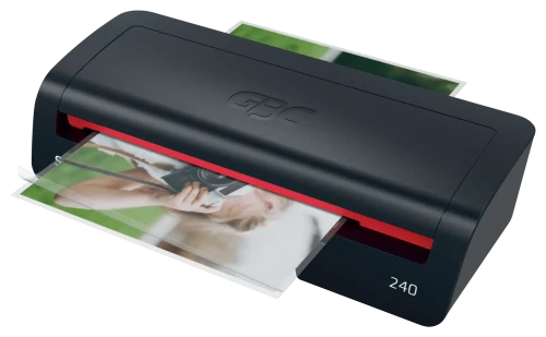 GBC 240. Ancho máximo de laminación: 24 cm, Tipo: Laminadora térmica, Tiempo de pre calefacción: 2 min. Consumo energético: 550 W, Voltaje de entrada AC: 220 – 240 V, Frecuencia de entrada AC: 50/60 Hz. Ancho: 360 mm, Profundidad: 151 mm, Altura: 87 mm. Certificados de conformidad: CE, GS mark, TÜV mark