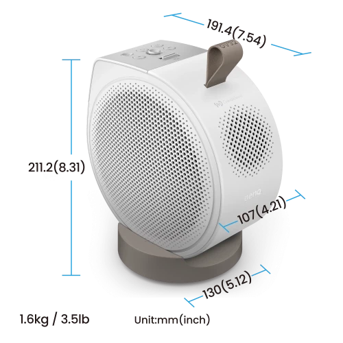 BenQ GV32. Brillo de proyector: 500 lúmenes ANSI, Tecnología de proyección: DLP, Resolución original del proyector: 1080p (1920×1080). Tipo de fuente luminosa: LED, Duración de la fuente luminosa: 20000 h, Vida útil de la fuente luminosa (modo económico): 30000 h. Tipo de zoom: Fijo, Compensar: 100%. Formatos gráficos soportados: 640 x 480 (VGA), 1280 x 720 (HD 720), 1920 x 1080 (HD 1080), 3860 x 2160, Modos de color de vídeo: Proyector, Cine, Juego, Salón, Deportes. Versión HDMI: 2.0b