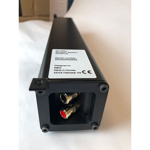 SHARP/NEC SP-RM3. Uso recomendado: Pantalla de señalización. Tecnología de conectividad: Alámbrico. Potencia estimada RMS: 20 W, Rango de frecuencia: 80 – 20000 Hz, Obstrucción: 8 Ω. Color del producto: Negro