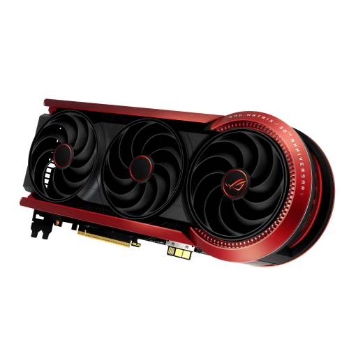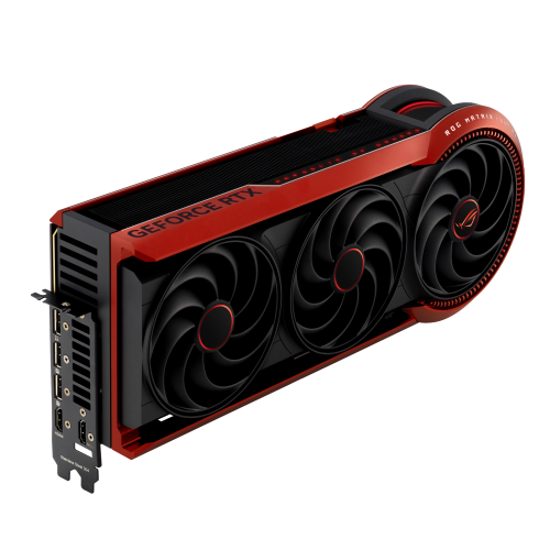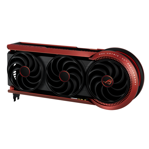 ASUS ROG-MATRIX-RTX5090-P32G-30TH. Familia de procesadores de gráficos: NVIDIA, Procesador gráfico: GeForce RTX 5090. Capacidad memoria de adaptador gráfico: 32 GB, Tipo de memoria de adaptador gráfico: GDDR7, Ancho de datos: 512 bit. Máxima resolución: 7680 x 4320 Pixeles. Versión OpenGL: 4.6. Tipo de interfaz: PCI Express 5.0. Tipo de enfriamiento: Activo, Número de ventiladores: 3 Ventilador(es), Iluminación de color: Multi