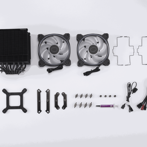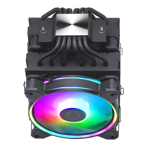 Cooler Master Hyper 622 Halo Black. Tipo: Refrigerador de aire, Diámetro de ventilador: 12 cm, Velocidad de rotación (mín.): 650 RPM, Velocidad de rotación (máx.): 2050 RPM, Nivel de ruido (alta velocidad): 27 dB, Máximo flujo de aire: 51,88 cfm, Presión máxima de aire: 2,89 mmH2O, Tipo de soporte: Rodamiento tipo rifle. Ancho: 137 mm, Profundidad: 125 mm, Altura: 157 mm. Color del producto: Negro