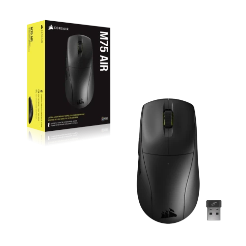 Corsair M75. Factor de forma: Ambidextro. Tecnología de detección de movimientos: Óptico, Interfaz del dispositivo: Bluetooth, Resolución de movimiento: 26000 DPI, Tipo de botones: Botones presionados, Cantidad de botones: 4, Tipo de desplazamiento: Rueda. Fuente de energía: Baterías. Color del producto: Negro