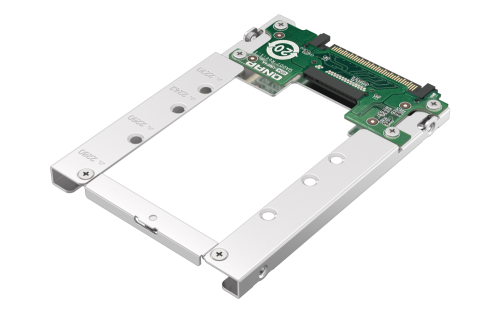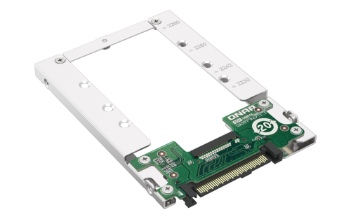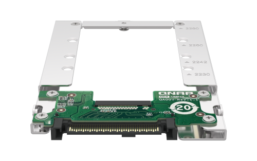 El ligero QDA-UMP4A le permite instalar una SSD NVMe PCIe M.2 en una ranura para SSD NVMe PCIe U.2 (SFF-8639) de 2,5″ de un NAS de QNAP. (SSD M.2 de venta por separado)
