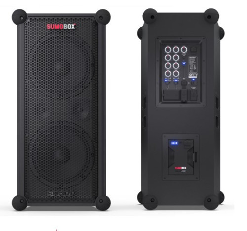 Potente sistema de altavoces con un RMS de 120 W/105 dB a través de dos altavoces de bajos de 8″ más dos altavoces de agudos de 2″. SAM® by Devialet proporciona linealidad mejorada y rendimiento a baja frecuencia para permitirle disfrutar de graves ricos, precisos y potentes con distorsión audible limitada. La carcasa del altavoz elaborada en madera ofrece una acústica precisa y su disposición en ángulo se ha diseñado para una dispersión optima del sonido. Montaje en poste estándar integrado en la base de 35 mm (1-3/8 pulg.) y protectores de bola opcionales en las esquinas, que se pueden retirar (con un destornillador que se incluye) cuando se usa como un soporte. Tiempo de reproducción de (hasta) 10 horas con la batería de iones de litio de 14,8 V y 5 Ah incluida o mediante conexión a la corriente. Panel profesional con tres canales de entrada: Conector combinado TRS/XLR (dos unidades) con ajuste de reverberación, bajos y agudos, y función Aux/Bluetooth, todo con control de nivel independiente. El selector de instrumento permite un ajuste rápido de los niveles para el teclado/la entrada de línea, la guitarra o el micrófonoTransmite música de forma inalámbrica desde tu dispositivo inteligente con función Bluetooth® Enlaza dos SumoBoxes de forma inalámbrica en modo dual para reproducción Bluetooth® o conecta varios SumoBoxes juntos con el enlace de altavoz amplificado.