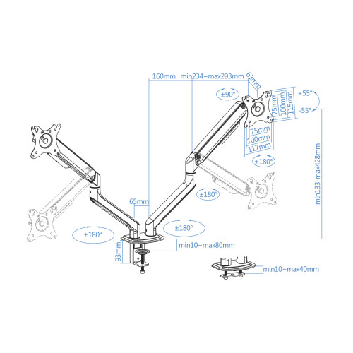 TooQ DB4132TNR-G soporte para monitor 81,3 cm (32″) Abrazadera/Atornillado Negro