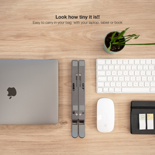Nuestro soporte de aluminio es perfecto para elevar un portátil, una tablet o simplemente un buen libro. Su diseño ligero y plegable te permitirá llevarlo siempre contigo y usarlo en cualquier ocasión.