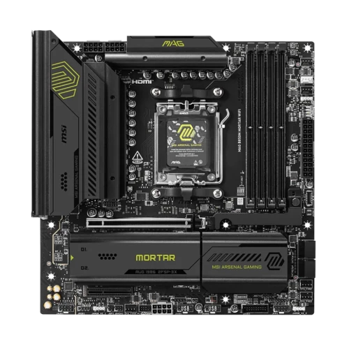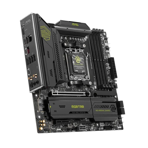 Esta Placa Base MSI MAG B850M MORTAR WIFI ofrece un rendimiento excepcional para usuarios exigentes que buscan estabilidad y velocidad de última generación. Diseñada para procesadores AMD Ryzen™ de las series 9000, 8000 y 7000, esta placa base incorpora el chipset AMD B850 y el nuevo socket AM5, lo que garantiza compatibilidad con las tecnologías más recientes. Soporta hasta 256GB de memoria DDR5 en configuración de doble canal, con velocidades de hasta memoria DDR5 8200 MT/s en modo overclocking. Esto se traduce en una experiencia fluida tanto en tareas pesadas como en juegos. Además, incluye 3 ranuras M.2 compatibles con PCIe 5.0 y 4.0, lo que permite instalar unidades de almacenamiento ultrarrápidas para reducir al mínimo los tiempos de carga.