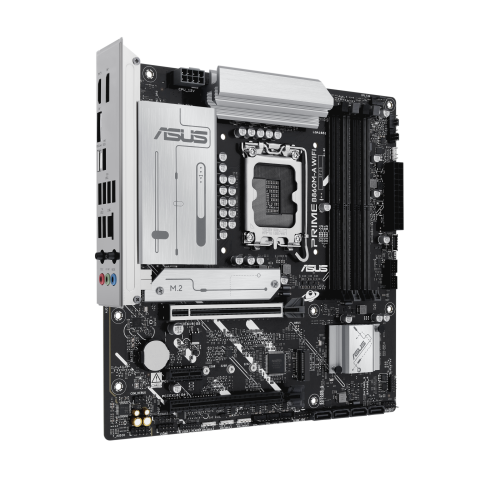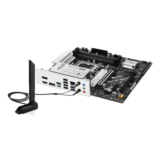ASUS PRIME B860M-A WIFI. Fabricante de procesador: Intel, Socket de procesador: LGA 1851 (Socket V1), Procesador compatible: Intel Core Ultra (Series 2). tipos de memoria compatibles: DDR5-SDRAM, Memoria interna máxima: 256 GB, Tipo de ranuras de memoria: DIMM. Interfaces de disco de almacenamiento soportados: M.2, SATA III, Tipos de unidades de almacenamiento admitidas: HDD & SSD, Niveles RAID: 0, 1, 5, 10. Tipo de interfaz ethernet: 2.5 Gigabit Ethernet, Estándar Wi-Fi: Wi-Fi 6E (802.11ax), Wi-Fi estándares: Wi-Fi 6E (802.11ax). Componente para: PC, Factor de forma: micro ATX, Familia del chipset: Intel