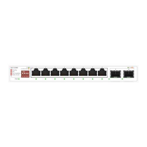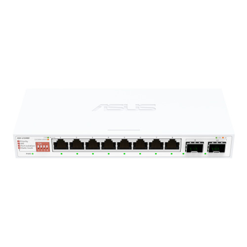 ASUS QG-U1080. Tipo de interruptor: No administrado. Puertos tipo básico de conmutación RJ-45 Ethernet: 2.5G Ethernet (100/1000/2500), Cantidad de puertos básicos de conmutación RJ-45 Ethernet: 8. Tabla de direcciones MAC: 16000 entradas. Estándares de red: IEEE 802.3ab, IEEE 802.3bz, IEEE 802.3u, IEEE 802.3x, IEEE 802.3az. Voltaje de entrada DC: 12 V
