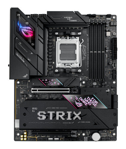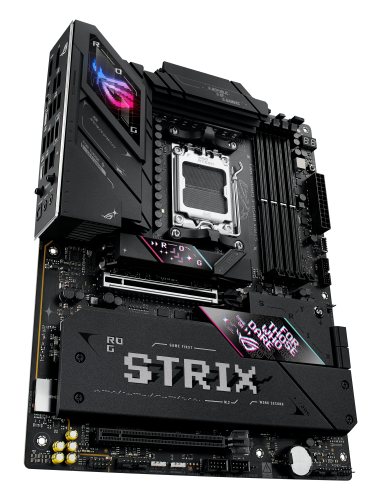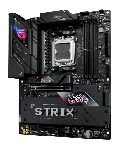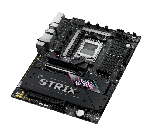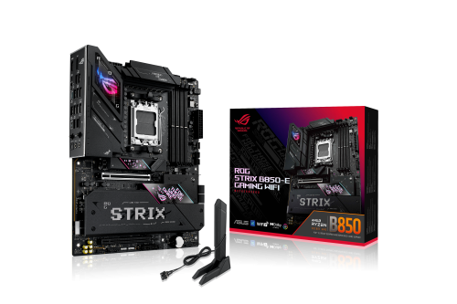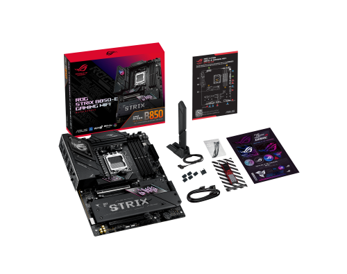 ASUS ROG STRIX B850-E GAMING WIFI. Fabricante de procesador: AMD, Socket de procesador: Zócalo AM5, Procesador compatible: AMD Ryzen 7000 Series, AMD Ryzen 8000 Series, AMD Ryzen 9000 Series. tipos de memoria compatibles: DDR5-SDRAM, Memoria interna máxima: 192 GB, Tipo de ranuras de memoria: DIMM. Interfaces de disco de almacenamiento soportados: M.2, SATA III, Tipos de unidades de almacenamiento admitidas: HDD & SSD, Niveles RAID: 0, 1, 5, 10. Máxima resolución: 7680 x 4320 Pixeles. Tipo de interfaz ethernet: 5 Gigabit Ethernet, Estándar Wi-Fi: Wi-Fi 7 (802.11be), Wi-Fi estándares: Wi-Fi 7 (802.11be)