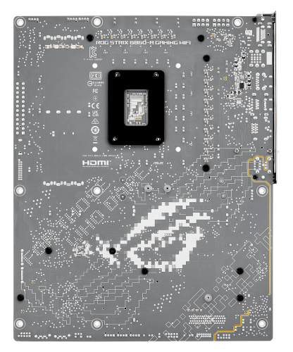 ASUS ROG STRIX B860-A GAMING WIFI. Fabricante de procesador: Intel, Socket de procesador: LGA 1851 (Socket V1), Procesador compatible: Intel Core Ultra (Series 2). tipos de memoria compatibles: DDR5-SDRAM, Memoria interna máxima: 256 GB, Tipo de ranuras de memoria: DIMM. Interfaces de disco de almacenamiento soportados: M.2, SATA III, Tipos de unidades de almacenamiento admitidas: HDD & SSD, Niveles RAID: 0, 1, 5, 10. Tipo de interfaz ethernet: 2.5 Gigabit Ethernet, Estándar Wi-Fi: Wi-Fi 7 (802.11be). Componente para: PC, Factor de forma: ATX, Familia del chipset: Intel