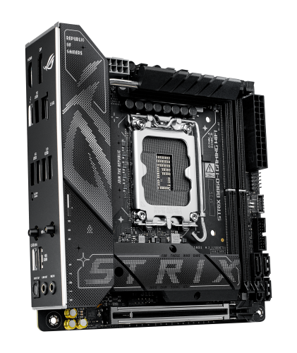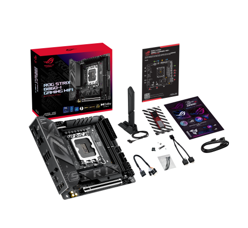 ASUS ROG STRIX B860-I GAMING WIFI. Fabricante de procesador: Intel, Socket de procesador: LGA 1851 (Socket V1), Procesador compatible: Intel Core Ultra (Series 2). tipos de memoria compatibles: DDR5-SDRAM, Memoria interna máxima: 128 GB, Tipo de ranuras de memoria: DIMM. Interfaces de disco de almacenamiento soportados: M.2, SATA III, Tipos de unidades de almacenamiento admitidas: HDD & SSD, Niveles RAID: 0, 1, 5, 10. Tipo de interfaz ethernet: 2.5 Gigabit Ethernet, Estándar Wi-Fi: Wi-Fi 7 (802.11be). Componente para: PC, Factor de forma: mini ITX, Familia del chipset: Intel