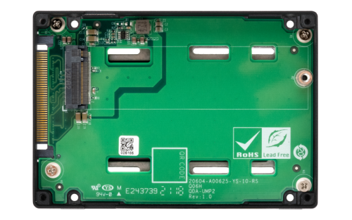 El QDA-UMP4 permite instalar una SSD NVMe PCIe 4.0 x4 M.2 en una bahía para unidades SSD U.2 (SFF-8639) PCIe 4.0 x4 NVMe de 2,5″. No se necesita ningún software ni controlador adicional para el QDA-UMP4 y se puede instalar en un PC/estación de trabajo (Windows, Linux) o en un NAS de QNAP para permitir el uso de SSD M.2 como alternativa asequible a las costosas SSD U.2.Utilice una SSD M.2 2280 (clave M) PCIe NVMe en una bahía para unidades SSD U.2 PCIe NVMe (SSD M.2 de venta por separado)Velocidades de transferencia de archivos de hasta PCIe 4.0 x4.(Compatible con NVMe PCIe 3.0 para SSD M.2 y bahías de unidades U.2)Diseño de alta calidad para una mejor disipación del calorLas almohadillas térmicas de la SSD M.2 y el chasis metálico de aleación de aluminio ayudan a disipar el calor que emite la SSD M.2 para garantizar un alto rendimiento.Instale un PC/estación de trabajo para un mayor rendimiento y unos costes más reducidos.Al utilizar el QDA-UMP4 para instalar una SSD M.2 en la bandeja de SSD U.2 de 2,5″ de un PC/estación de trabajo de alta gama (Windows o Linux), puede disfrutar de una forma más asequible de potenciar el rendimiento de aplicaciones que requieran un alto ancho de banda (como la edición de vídeo sobre la marcha, aplicaciones de categoría servidor o juegos en línea). El estado de las SSD instaladas se puede monitorizar mediante su herramienta de monitorización preferida (como utilidades facilitadas por el fabricante o software de terceros como CrystalDiskInfo).Instalar en el NAS de QNAP para un almacenamiento eficaz y asequible al mismo tiempoAl permitir el uso de SSD M.2 en lugar de SSD U.2, el QDA-UMP4 le permite optimizar aplicaciones con un uso intensivo de los datos de una manera más asequible. También puede mejorar el rendimiento IOPS al configurar la caché SSD. Los usuarios pueden monitorizar el estado de la unidad y gestionar el uso de la SSD desde el Administrador de Almacenamiento e Instantáneas de QTS.