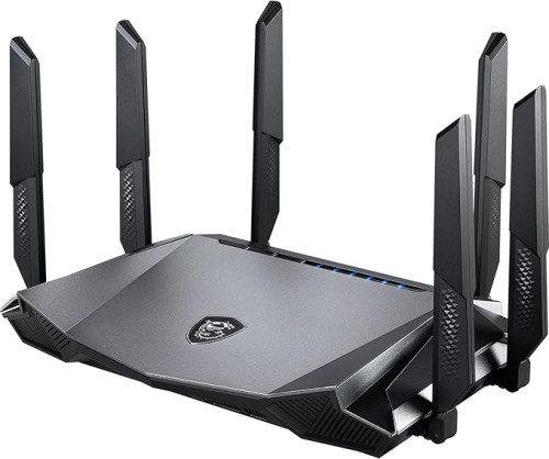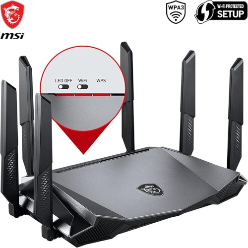 MSI RadiX AX6600 WiFi 6 Router Gaming Tres Bandas – WLAN Rápida de hasta 6600 Mbps (5GHz, 2.4GHz Inalámbrico), AI QoS Priority, MU-MIMO, Beamforming, WPA3, 2.5G WAN/LAN & 4 x 1G LAN Ports.