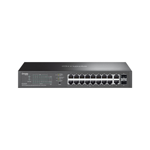 OMADA ES220GP. Tipo de interruptor: Gestionado. Puertos tipo básico de conmutación RJ-45 Ethernet: Gigabit Ethernet (10/100/1000), Cantidad de puertos básicos de conmutación RJ-45 Ethernet: 18. Tabla de direcciones MAC: 8000 entradas, Capacidad de conmutación: 40 Gbit/s. Estándares de red: IEEE 802.1Q, IEEE 802.1ab, IEEE 802.1p, IEEE 802.3af, IEEE 802.3at, IEEE 802.3x. Conector eléctrico: Conector de alimentación AC-in. Energía sobre Ethernet (PoE). Montaje en rack